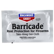 The Birchwood Casey Barricade Take-Alongs are compact, individually sealed gun cloths designed to provide long-lasting rust protection for firearms and other metal equipment. These wipes rapidly remove moisture from metal pores and leave a transparent protective coating to prevent corrosion.