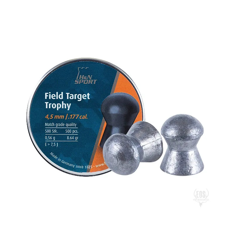 The H&N Field Target Trophy .177 Caliber (4.52mm) Pellets are medium-weight, highly accurate competition pellets designed for precision shooting and hunting applications. They offer exceptional aerodynamic stability, tight shot groups, and consistent performance.