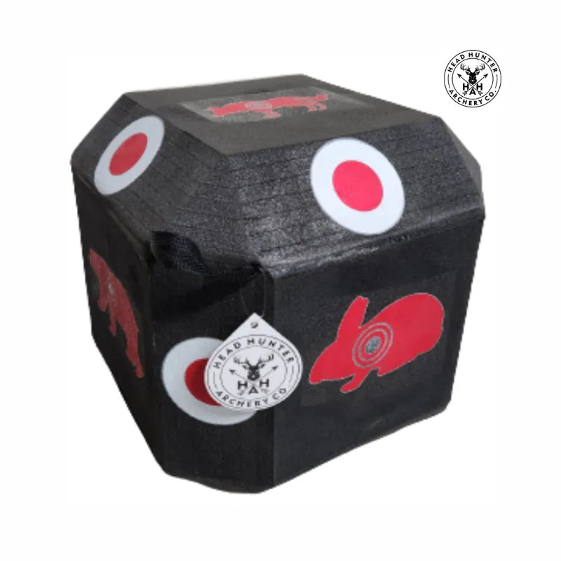 The Headhunter Archery Self-Healing Cube Broadhead Target - Pig is a durable and high-density target designed for broadhead practice, offering long-lasting performance and self-healing properties to withstand repeated shots.