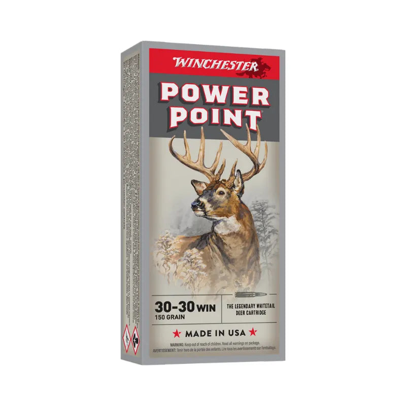 The Winchester Super-X .30-30 Winchester 150-Grain Power-Point ammunition is designed for hunting applications, offering controlled expansion, deep penetration, and reliable accuracy.